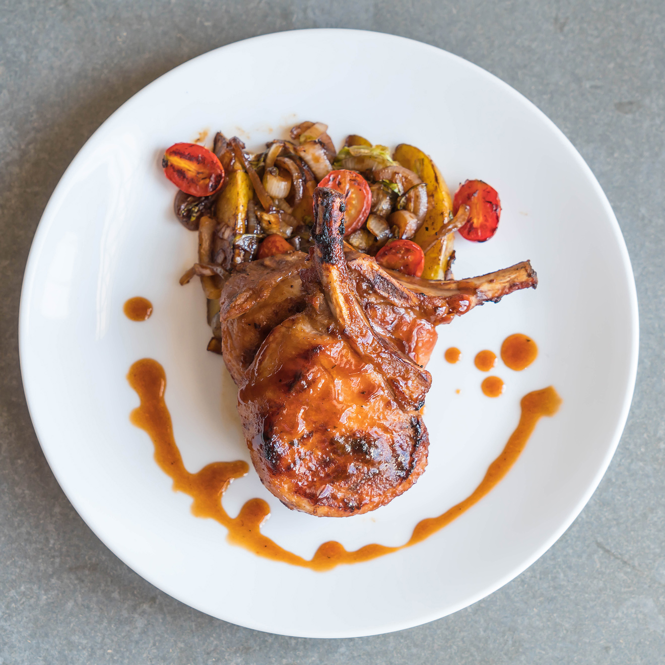 Steak from pork chop with vegetables